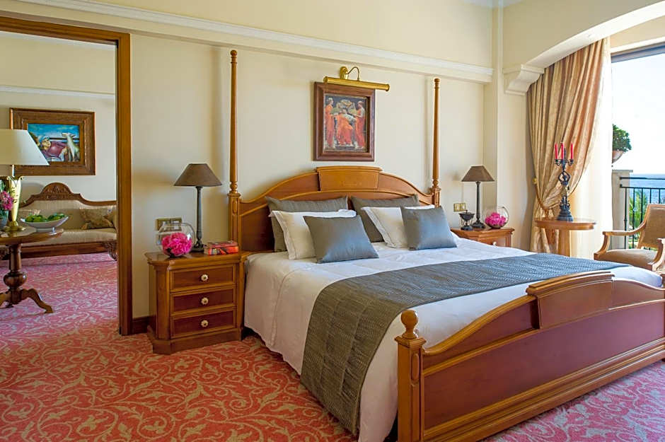 Deluxe Partial Sea View Room is 366 square feet and includes either a double bed 131-150 width or 2 single beds 80-130 width plus balcony, terrace, extra beds on demand, satellite tv , hairdryer, tea and coffee making facilities , safe, bathrobes, and slippers and is Wheelchair-accessible.